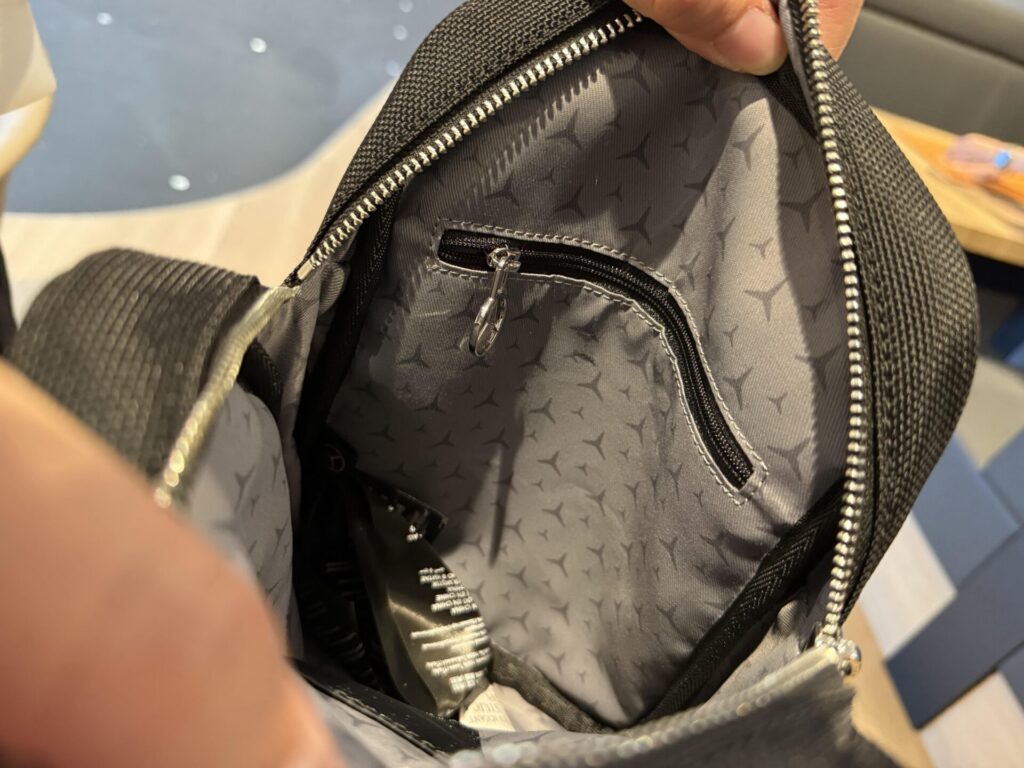 深めの外 側 ポ ケ ッ ト に加えて、 内 側 に は ジ ッ プ付きポ ケ ッ ト もあ り 、