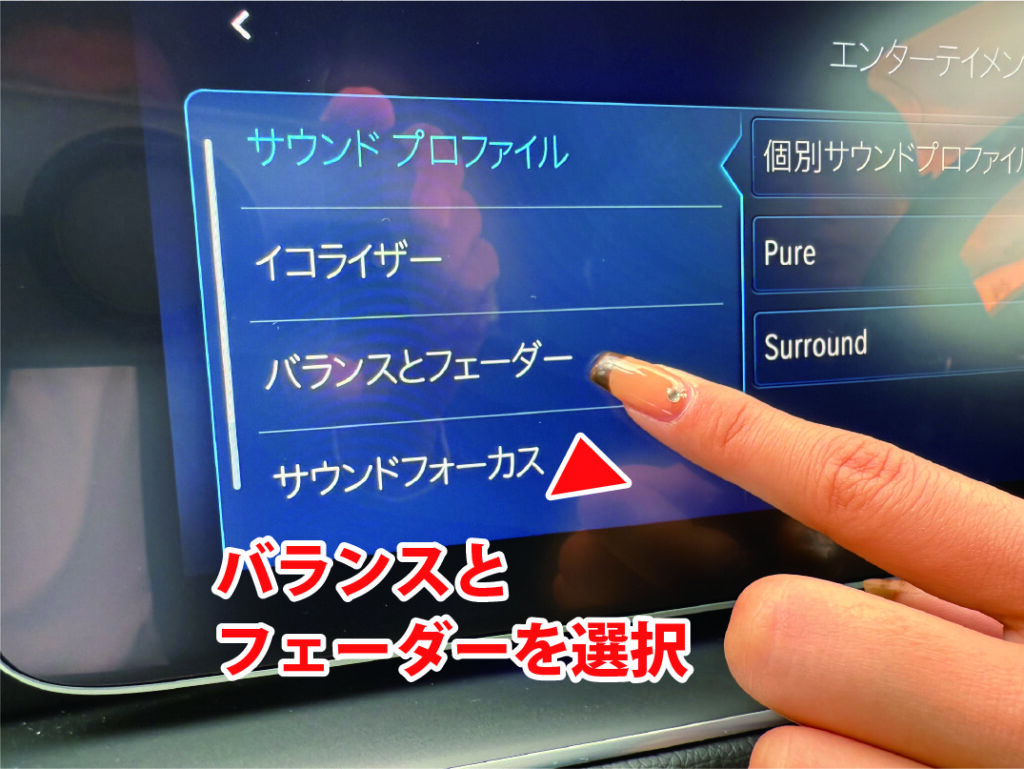 「エンターテインメント」「バランスとフェーダー」を選択します。