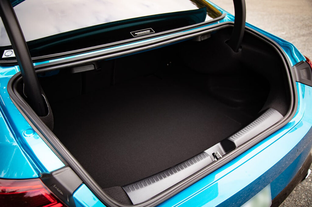 ワイド感溢れるフォルムに、縦ルーバーをあしらったAMG専用フロントグリル、空力性能を高める力強い造形の前後バンパー、19インチAMGアルミホイール等、高性能を物語るディティールの数々。コンパクトでありながら、ここまで存在感が大きいことに、まず驚かされる。まさに”クラスレス“の魅力が詰め込まれたクルマである。ボンネットを彩るのはスペシャルエンブレム。Mercedes-AMGの本拠であるアファルターバッハの名に由来する「清い水とリンゴの木」があしらわれたもので、クーペ特有の流れるようなルーフラインとともに、見る者に強烈な印象を与えてくれる。